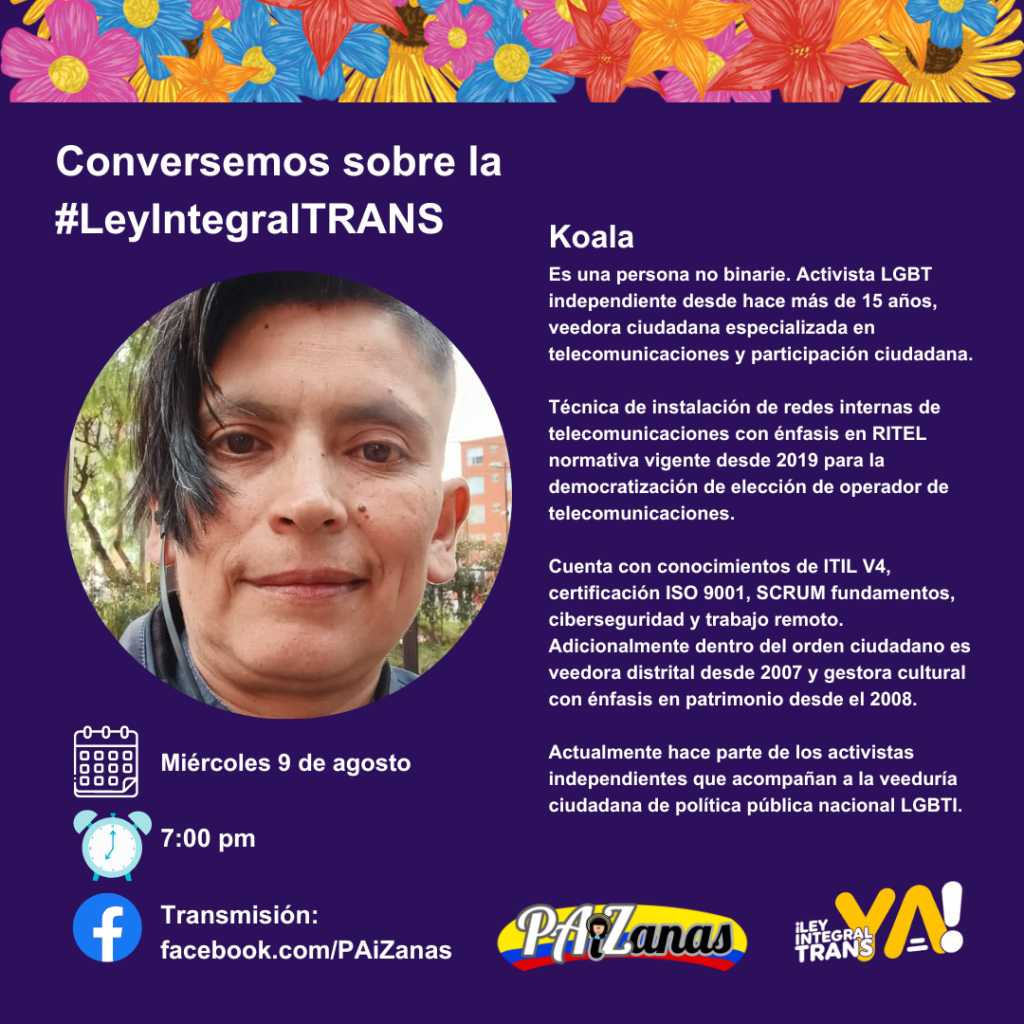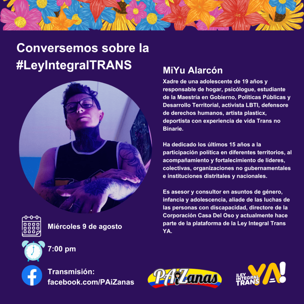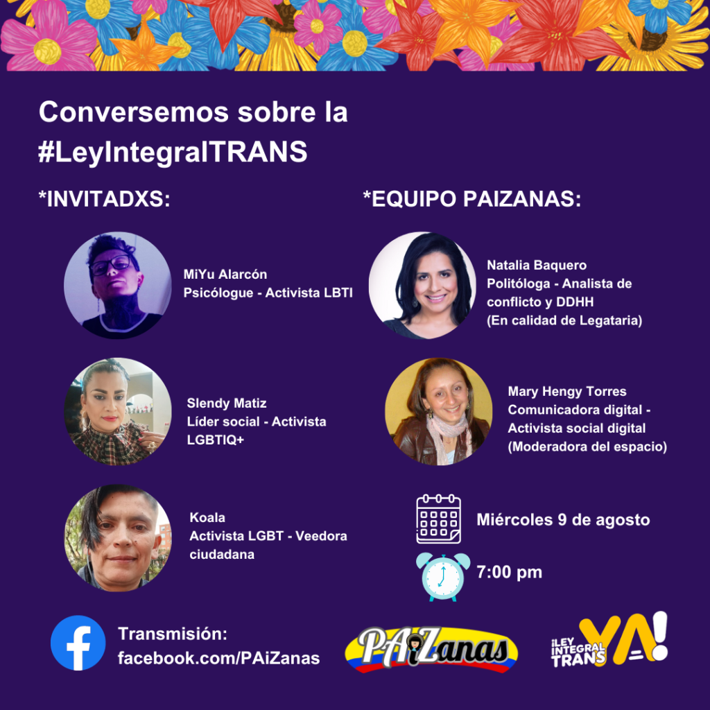 La #ConstrucciónDePaz pasa por el reconocimiento y respeto a la diversidad, por ello te invitamos este próximo miércoles 9 de agosto, a partir de las 7:00 pm, a conectarte a nuestro conversatorio sobre la #LeyIntegralTrans.