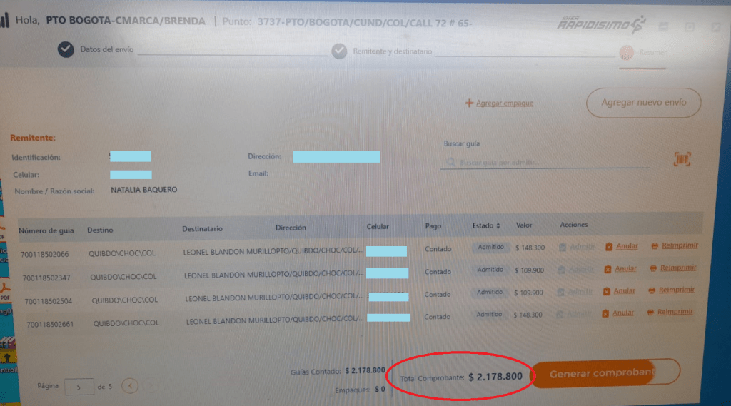 Una vez estuvieron organizados los llevamos a Interrapidísimo, para enviarlos en la ruta Bogotá – Quibdó. Envío que desafortunadamente tuvo un elevado costo por la distancia y condiciones geográficas, pero que logramos cubrir.