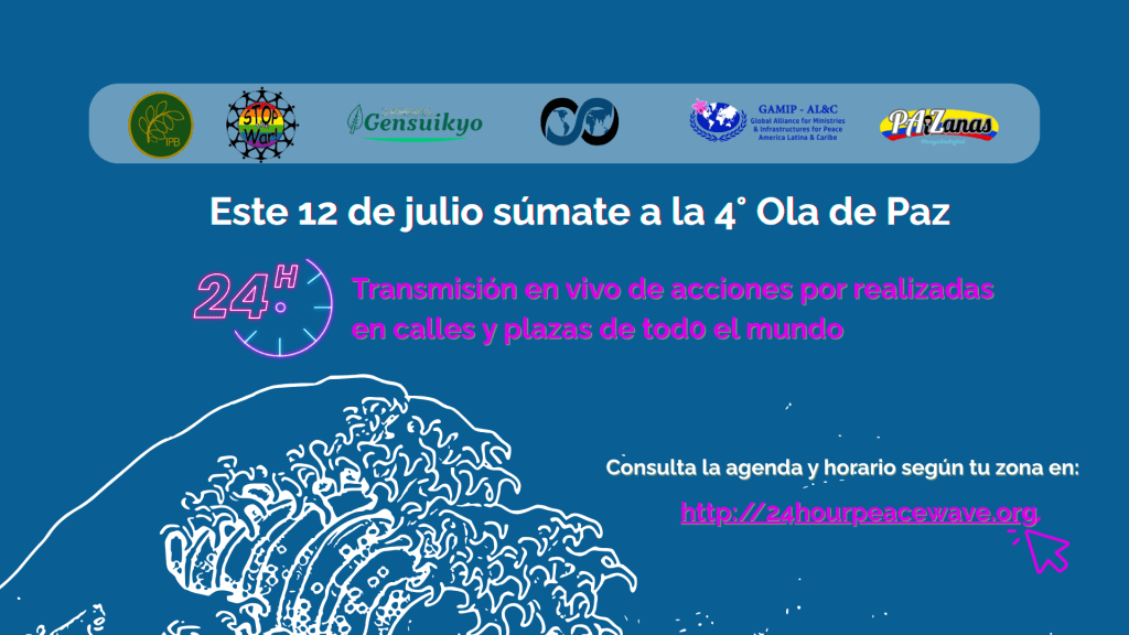 Nos complace anunciar que GAMIP ALC & PAiZanas se suman con entusiasmo a la cuarta edición de la Ola de Paz de 24 horas, un evento global coordinado por el International Peace Bureau, Stop the War Coalition Filipinas, Gensuikyo y World BEYOND War.