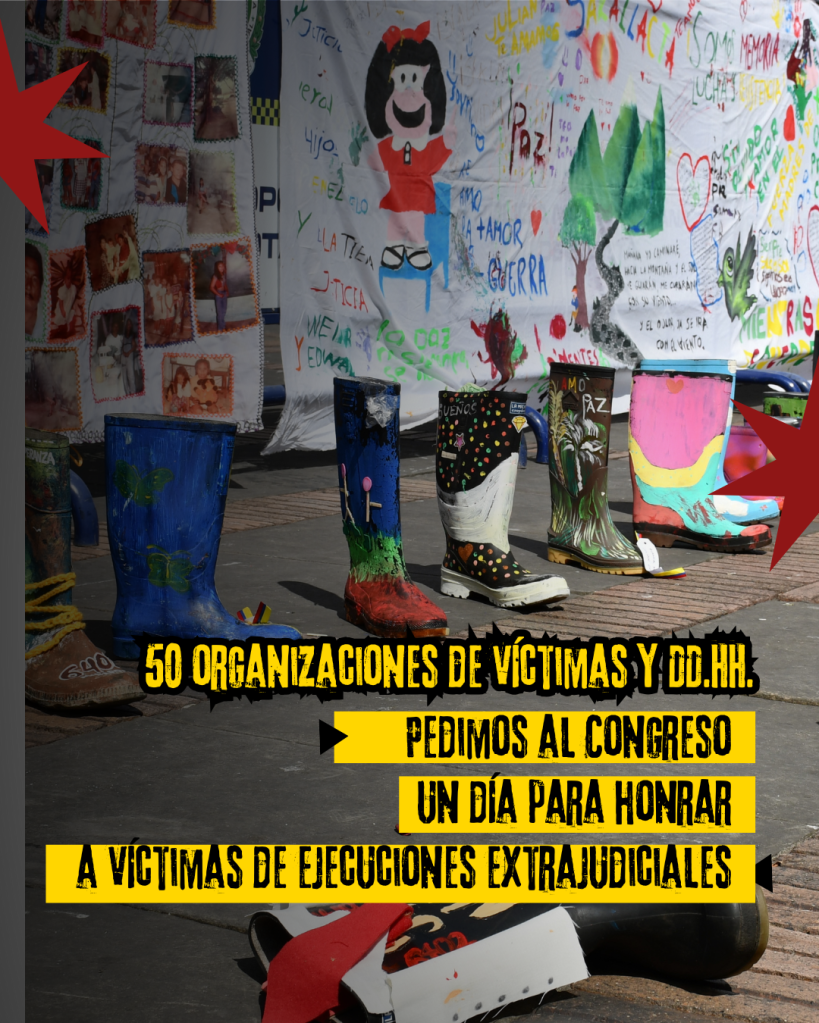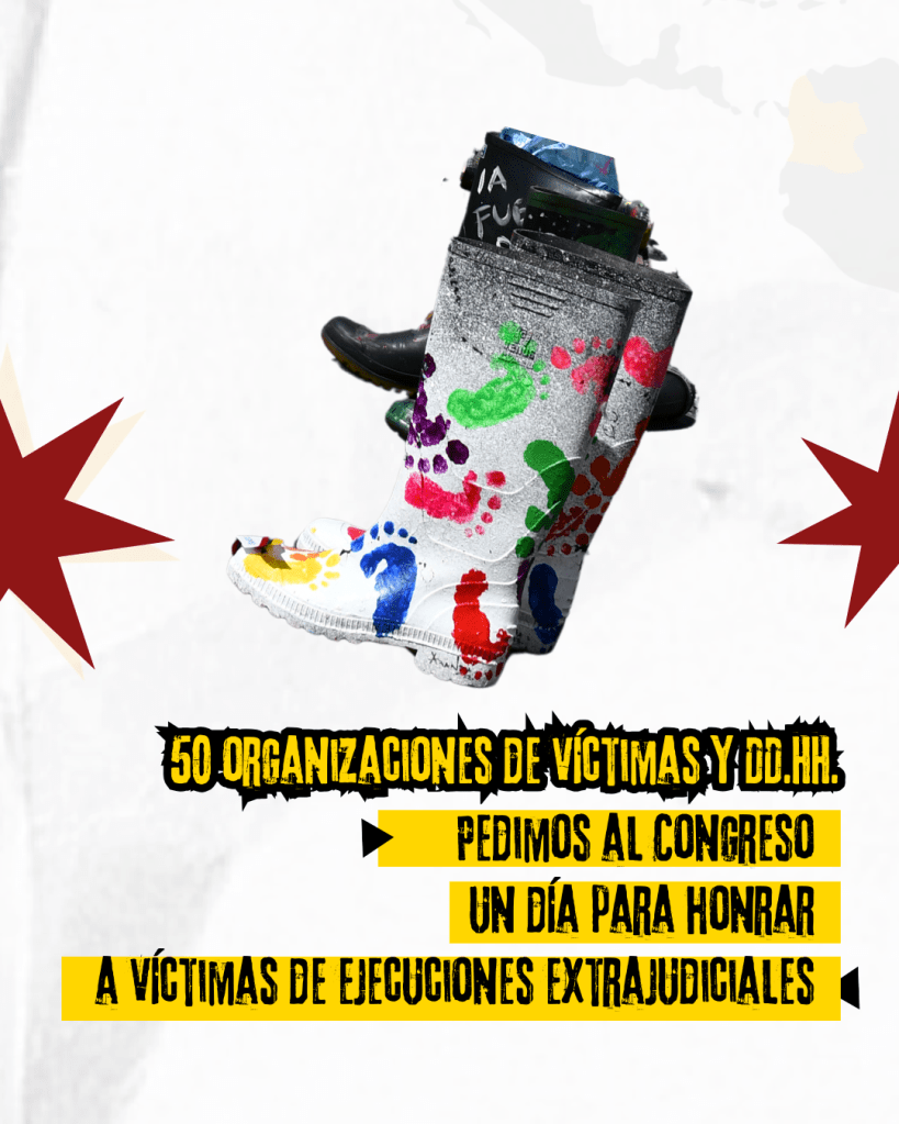 propuestas fallidas. Decretar este día es una forma de materializar el compromiso estatal con las garantías de no repetición y la construcción de memoria colectiva. Confiamos en que el actual Congreso de la República está a la altura del momento histórico para unir al país anualmente en profunda reflexión y reconocimiento al buen nombre de las víctimas de ejecuciones extrajudiciales, y